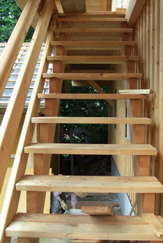 Wir bringen Sie nach oben, mit einer Stiege.